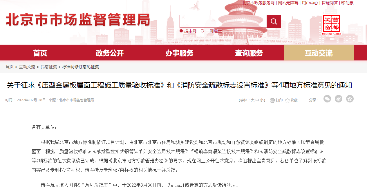 《消防安全疏散標志設置標準》面向社會公開征求意見,截止時間為2022年3月30日。