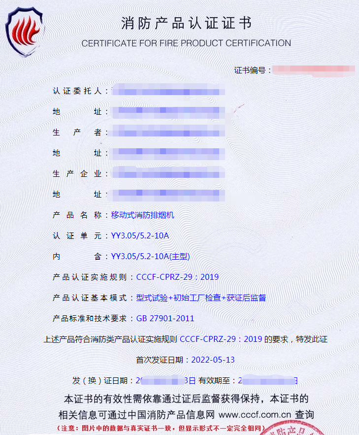 移動式消防排煙機(jī)認(rèn)證檢驗(yàn)要求